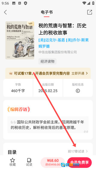 2、进入书籍页面以后,点击【前17章阅读】