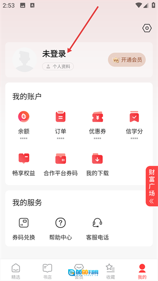 2、进入【我的】页面后,点击未登录区域,即可跳转至登录界面。
