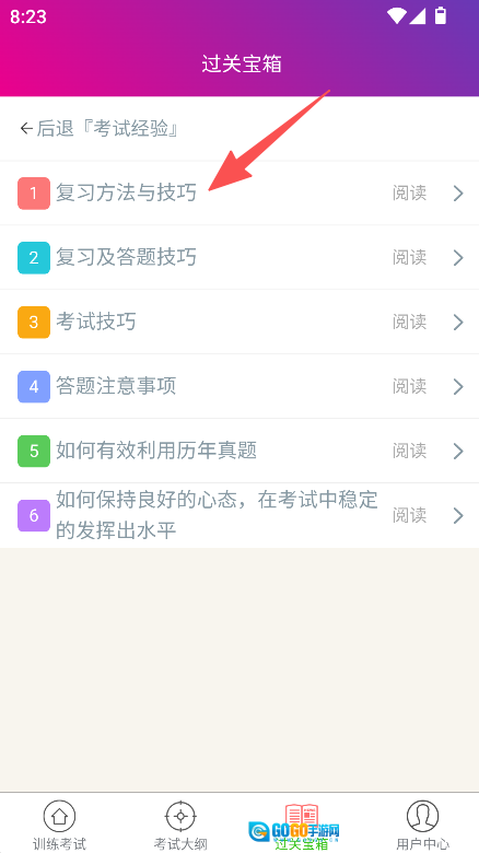 2、选择考试经验,查看复习方法与技巧等内容。