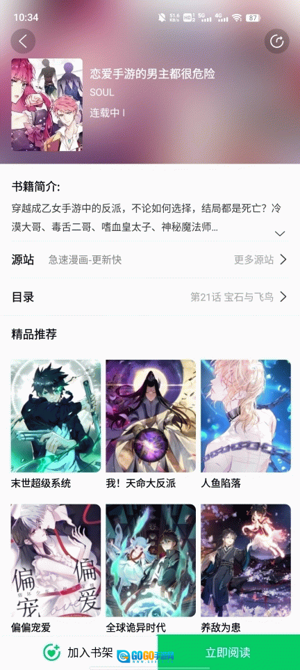 书架功能能够把自己喜爱的漫画资源添加到书架里进行管理,这个功能特别好用。