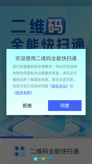 这款软件需要大家先同意二维码用户协议与隐私条款,之后再点击继续。
