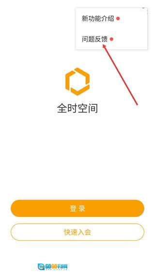 1、这是“全时空间”平台的首页,点击右上角的设置图标,能够展开功能菜单,其中包含新功能介绍和问题反馈等内容。