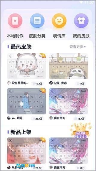 2、所有皮肤与表情包均已完全开放,不存在付费解锁的内容,无需任何成本即可打造专属个性键盘。