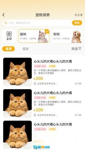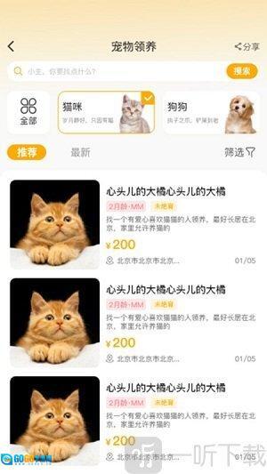 1. 宠物领养平台,你可以在上面浏览各类宠物的信息,提交申请后就能轻松拥有自己的爱宠。