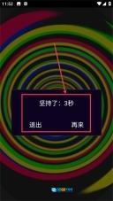 4、体验结束后,页面会呈现坚持时长(例如“3秒”),你可以选择“退出”回到主界面,也能点击“再来”再次参与体验。