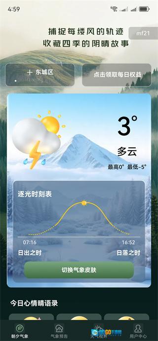 2、我们提供丰富多样且制作精美的天气主题皮肤,这些皮肤可依据实时天气情况自动变换界面的视觉风格,让使用过程更具趣味性。