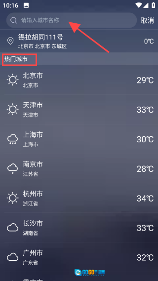 3、可以通过浏览热门城市列表进行选择,或者在搜索框中输入关键字来查找并添加你想要的城市。