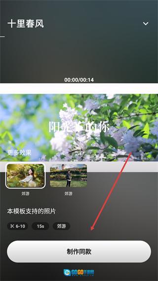 3、进入模板详情页后,查看【本模板支持的照片】相关要求,确认素材满足【6-10】张、【15s】时长等条件后,点击【制作同款】按钮。