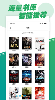 1、海量书库:百万部精选小说云集,言情、穿越、奇幻、武侠等各类题材全覆盖;