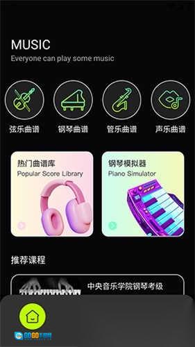 1.主色调选用黑色与荧光绿,在查找课程和曲谱时能带来十分前卫的界面使用感受。