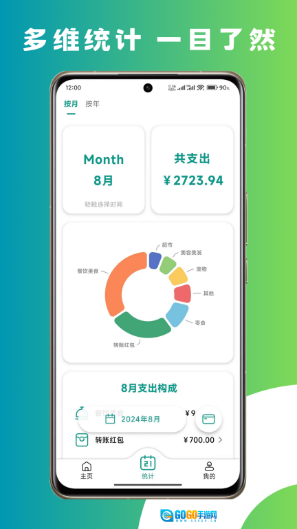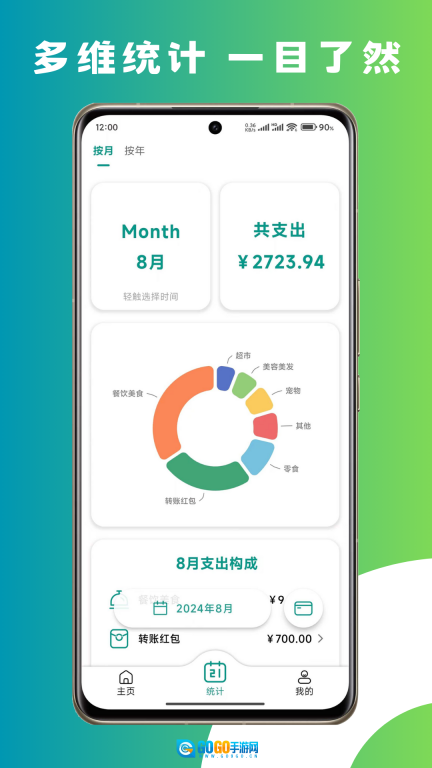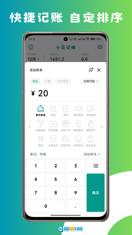 支持自定义分类和排序,收支一目了然;
