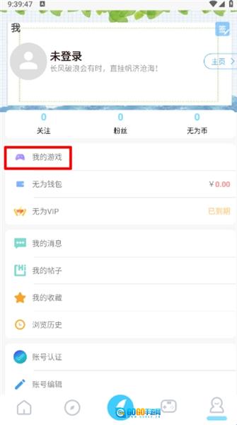 4.完成后,进入“我的”页面,点击“我的游戏”选项就能查看相关内容了。