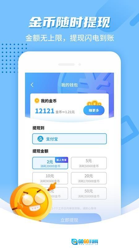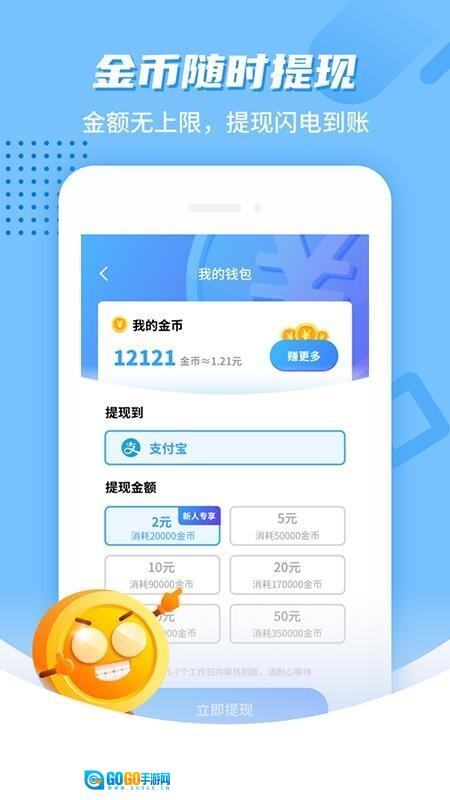 4、在平台内赚取的金币可快速提现,实时满足您的提现需求;