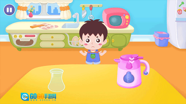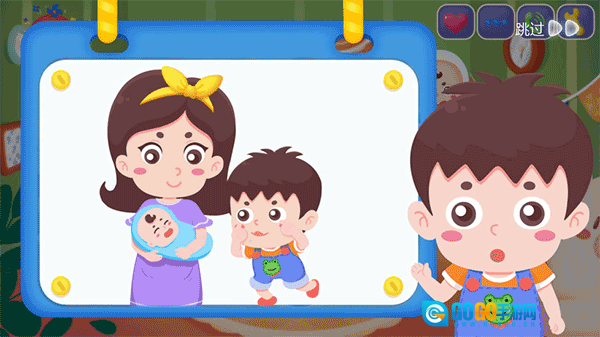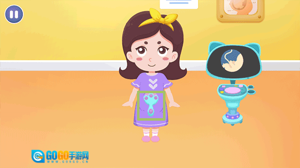 1、打开【妈妈生宝宝】游戏后,在启动页面点击蓝色的开始按钮,就能进入专为4~6岁宝宝设计的游戏场景了。