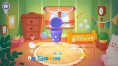 2、进入房间场景后,使用【吸尘器】工具,清除地垫上的污渍和杂物,完成环境整理这一步骤。