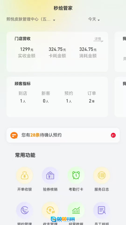 4、包含开单收银、验券核销、考勤打卡、服务日志等常用功能,能够满足门店日常运营的多种需求。