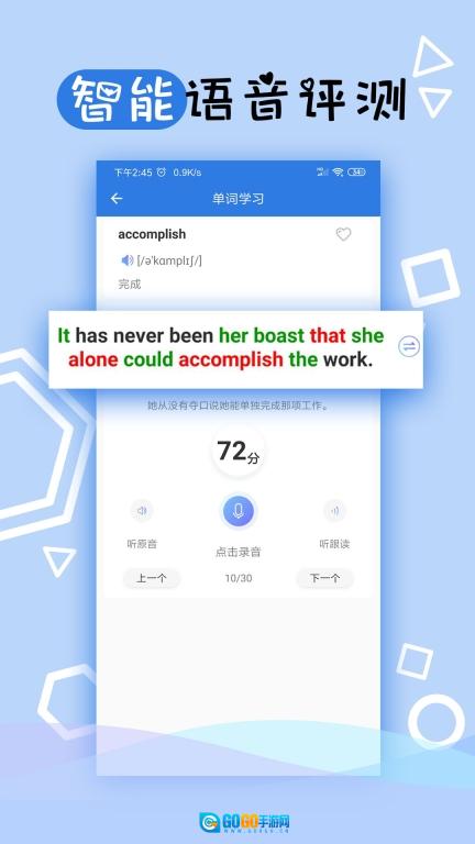 过往成绩完整记录:系统会留存您每一次的测试成绩单,您可以随时查看自己答错的题目,这将帮助您的英语水平得到快速提升。