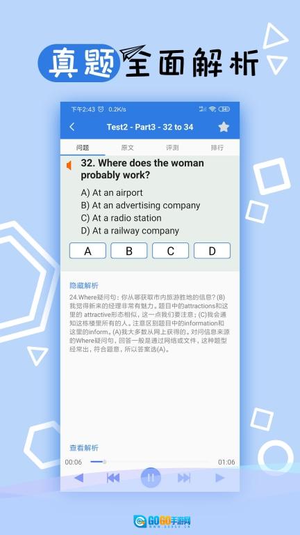 每一个听力内容都是按照严格的考试要求来打造的,你可以认真聆听。