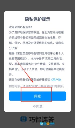 1、点击同意按钮即可进入应用程序界面,需接受相关条款才能使用后续功能。