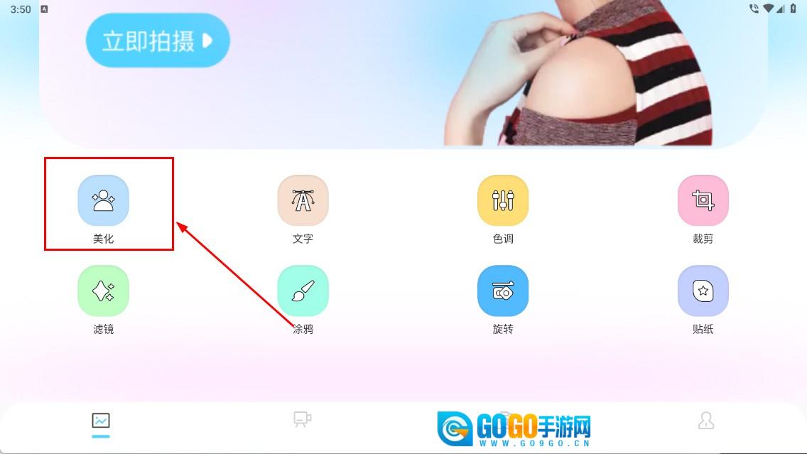 1、点击【美化】功能,进入图片美化界面,开始人像美化操作。