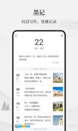 墨记是一款功能多样的笔记备忘类应用,可助力用户高效管理日记与笔记。不管是工作里记录关键事务,还是生活中留存美好时刻,墨记都能契合用户的各类需求。