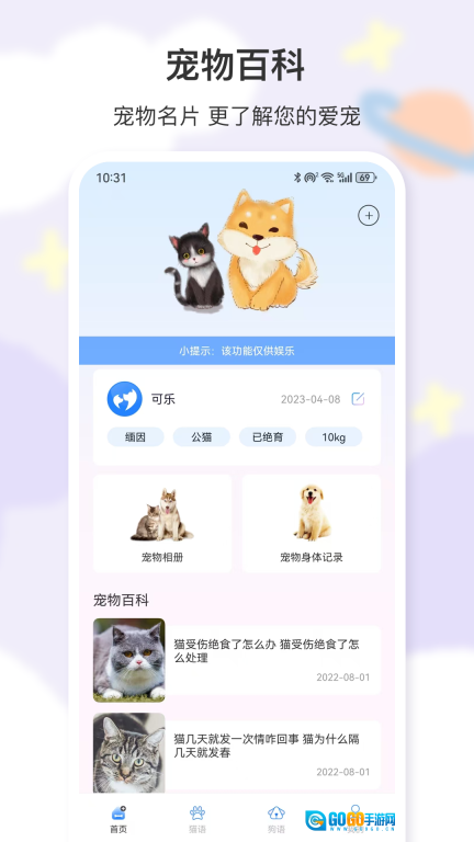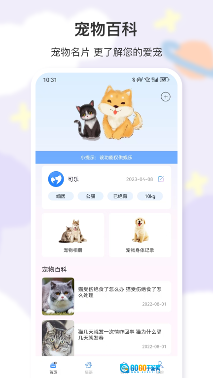 2、内还提供了丰富的宠物养护知识,涵盖饮食、健康、训练等方面的指导,助力用户更妥善地照料自己的宠物。