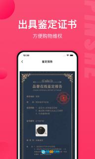 -在线鉴定服务:通过上传商品图片,对各类奢侈品及轻奢品的真伪进行辨别,并出具具有法律效力的鉴定证书,可用于消费者在购物过程中的维权事宜。