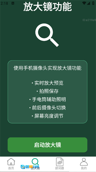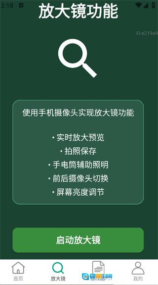 3. 点击页面下方的“放大镜”图标,就能调用手机摄像头,开启放大镜功能。