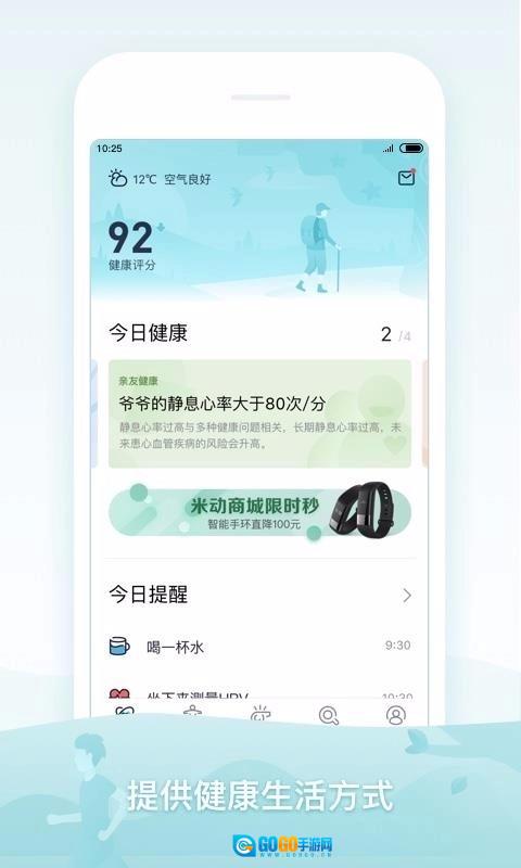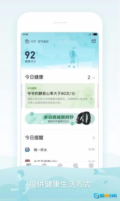 米动健康是一款健康运动的生活服务软件,设计健康监测图标让你随时都能查看数据,监测健康数据并帮助你培养良好的习惯,用图表方式展现,为用户带来优质的健康的生活环境和运动环境,随时查看,米动健康致力为用户提供优质的健康服务。