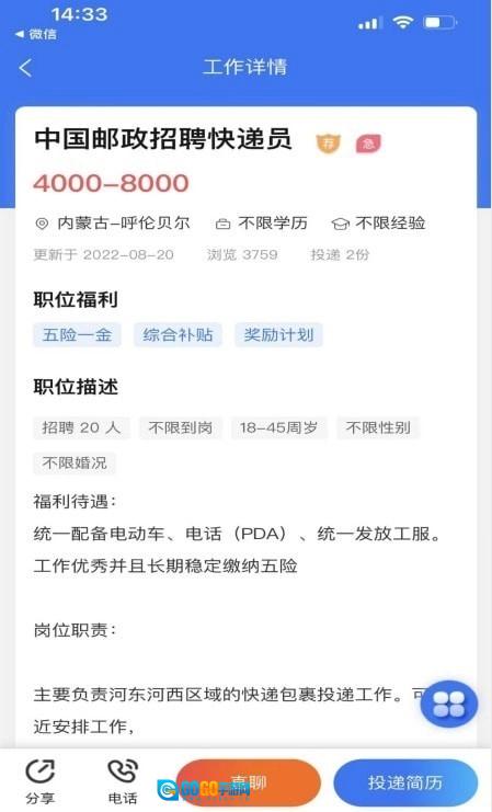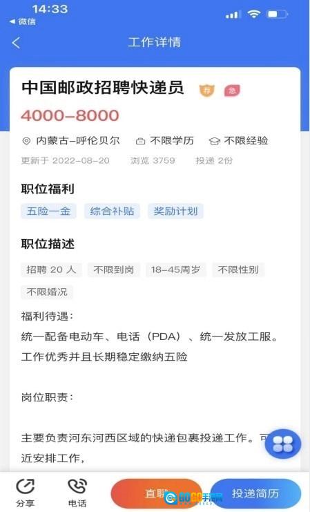 2、平台已记录下每个工作的具体要求,我们也能直接与招聘人员沟通,以更轻松的方式找到适合自己的高薪岗位。