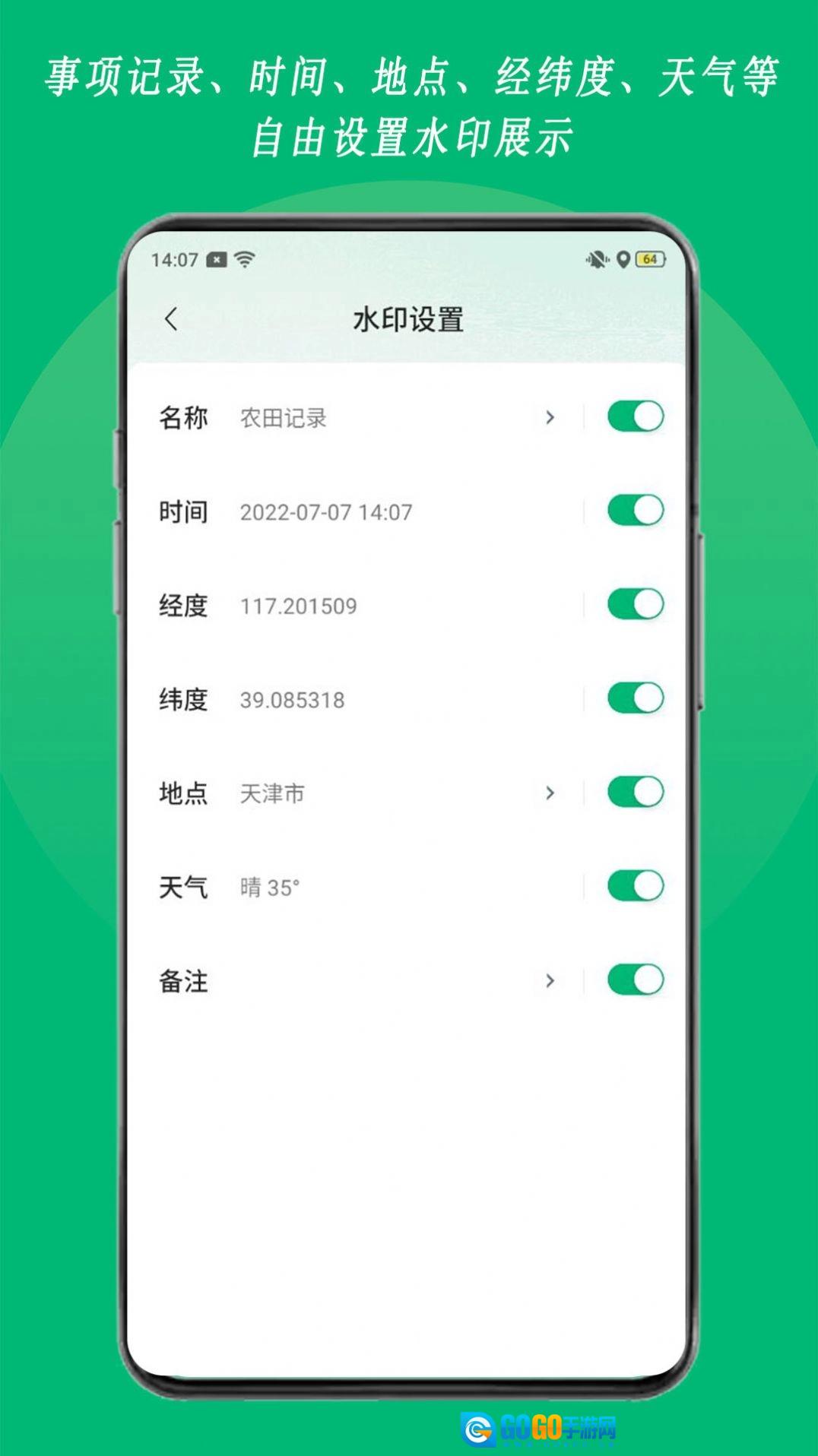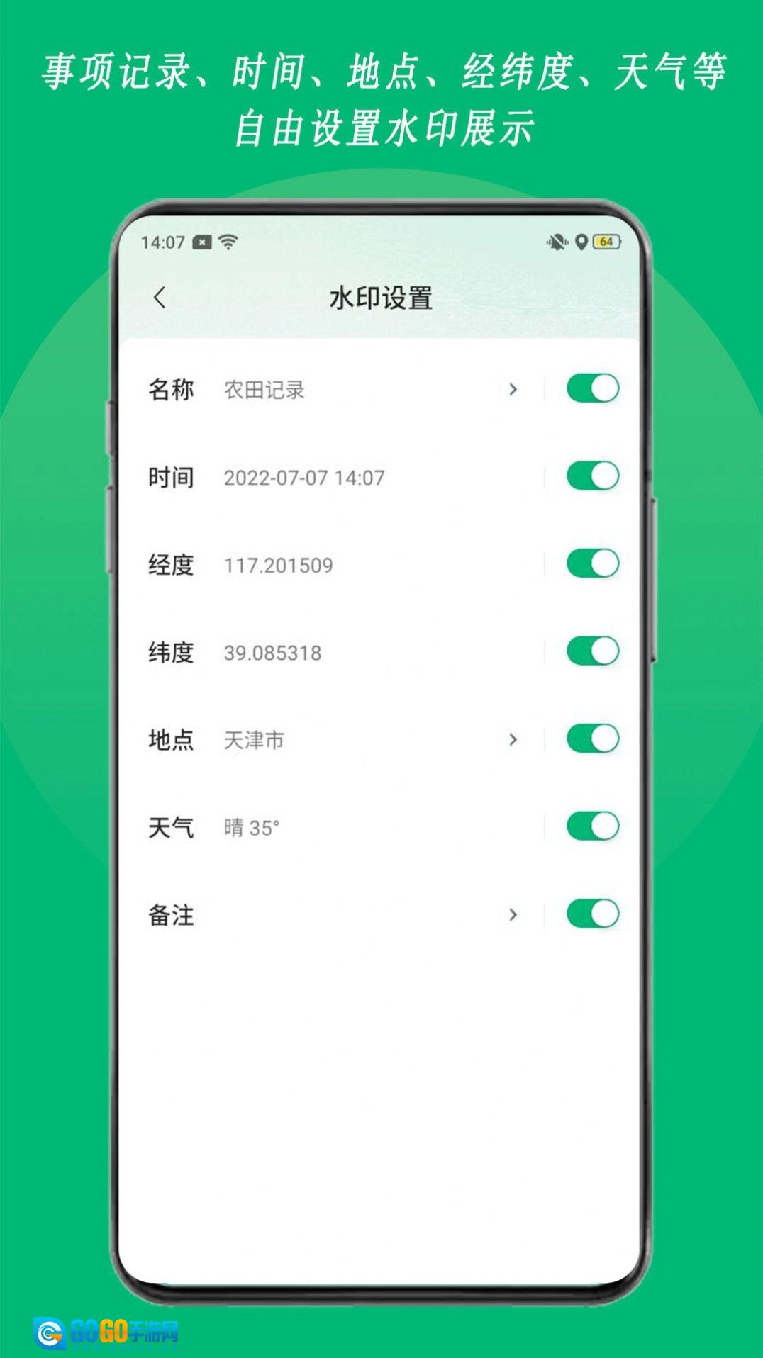 2、水印包含的内容不止时间与地点,还涵盖纬度、经度、天气等信息,事件记录支持每个人自由编辑;