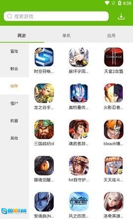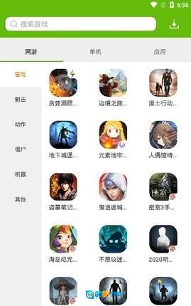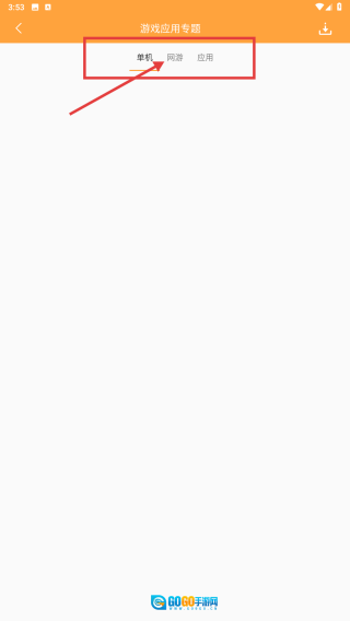 3、进入游戏应用专题页面后,点击网游分类选项,即可浏览网游相关的专题内容。