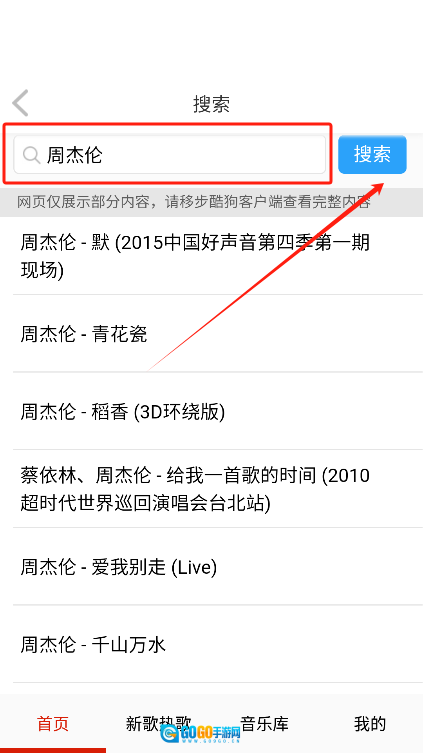 2. 可以在首页或者搜索栏里输入你想收听的歌曲名称或者相关关键词,然后点击搜索按钮。