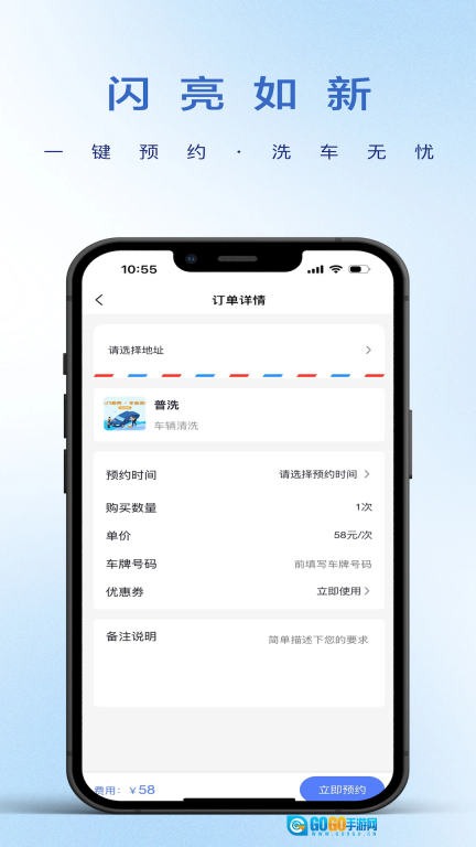 1、用户能够在线预约专业的上门洗车服务,只需用手机完成下单,就能体验到便捷的洗车服务,不用再排队等待。