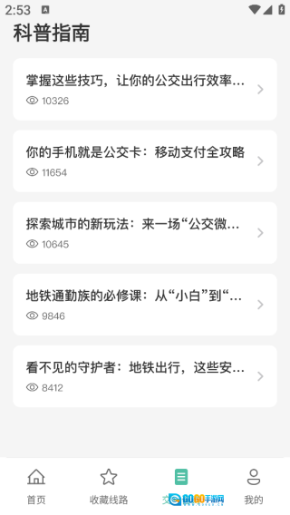 4、进入【交通咨询】板块,就能查看公交与地铁的详细科普指南。