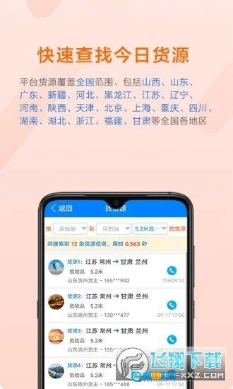 1、货源搜索功能,只需输入起始地、目的地以及车型车长信息,就能精准匹配到合适货源;