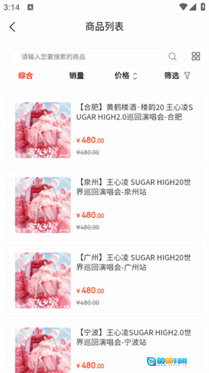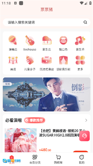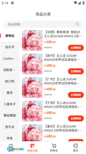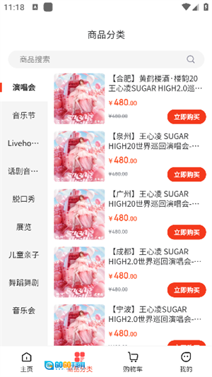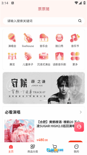 4、点击商品分类页面即可查看到全部的演出信息