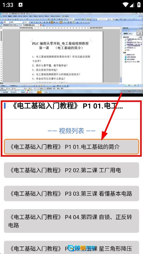 3、进入电工基础全集视频列表后,点击“电工基础入门教程P101.电工基础的简介”这一视频,即可开始学习相应内容。
