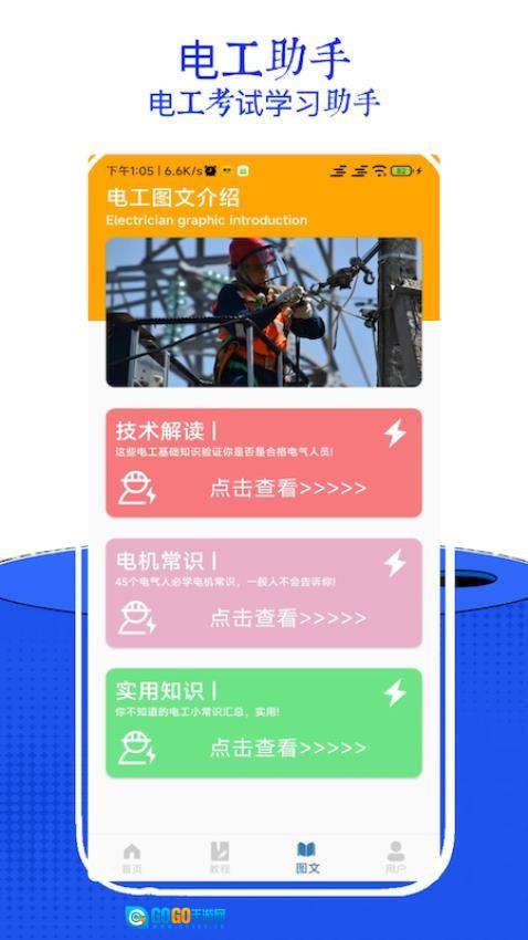 2、实用电工助手:实用功能模块,以图文结合的形式呈现详尽的电工专业知识,把抽象复杂的概念拆解为直观易懂的内容,助力用户更精准地把握核心知识点,为考试备考与日常技术能力提升提供有力支持。