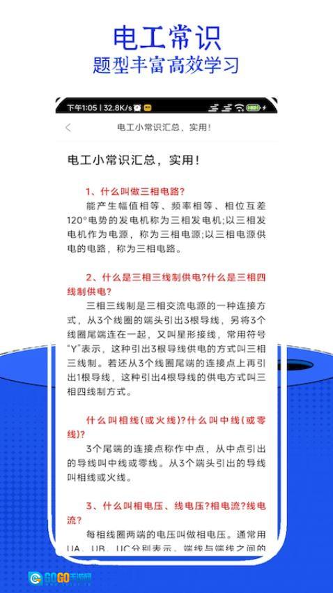 3、功能适配需求:涵盖从基础学习到考点练习的核心环节,搭配辅助理解的图文工具,功能覆盖电工考试学习全流程,适配不同学习目标的用户群体,满足多样化的学习需求。