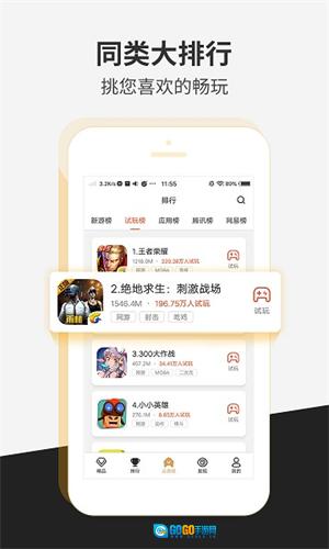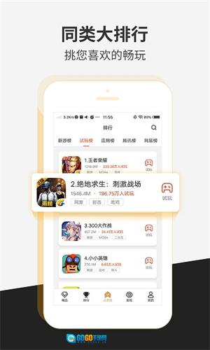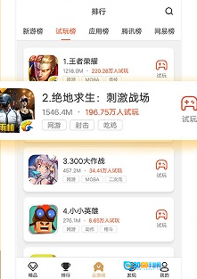 2、切换到排行榜界面后,就能在试玩榜上查看试玩人数最多的游戏。