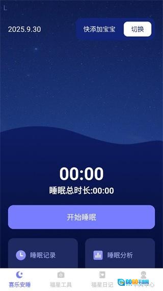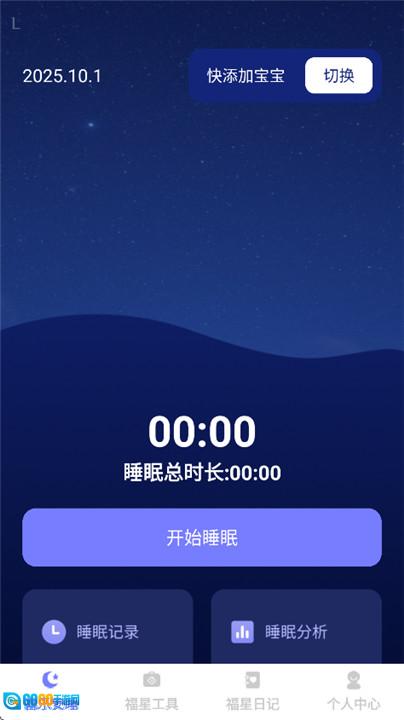2. 打开后,首页有专门的睡眠记录区域,能便捷记录宝宝的入睡、醒来时间和睡眠质量,通过分析了解规律,帮助宝宝养成良好的睡眠习惯。