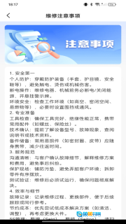3、包含安全防护、专业准备、服务规范等多方面的详细维修注意事项,能够帮助师傅提高服务质量和安全性。