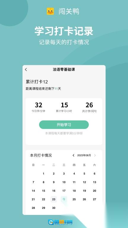 闯关鸭是一款融合了学习功能与趣味闯关机制的多语言学习应用,用户可从英语、日语、法语、西班牙语、韩语等语种中任选其一开启学习之旅,通过词汇预习、词组积累、语法梳理、句子练习、综合测试等多维度学习环节,全面提升目标语言的听说读写能力;软件以趣味化的答题、填空、句子翻译等游戏化模式,助力用户轻松掌握语言知识。