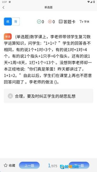 教师资格证考试学知题是众多学员备考必备的在线教育软件,它涵盖了丰富的知识点,并且会紧跟最新考点动态,把各类重要题型整合起来,让大家复习查阅更加便捷。此外,软件的做题模式十分灵活,学习时间可以自主安排,每天的刷题数量会自动记录,正确率也能同步呈现。