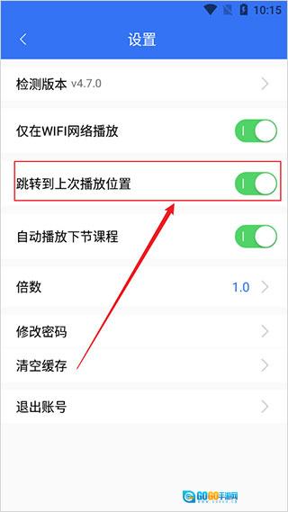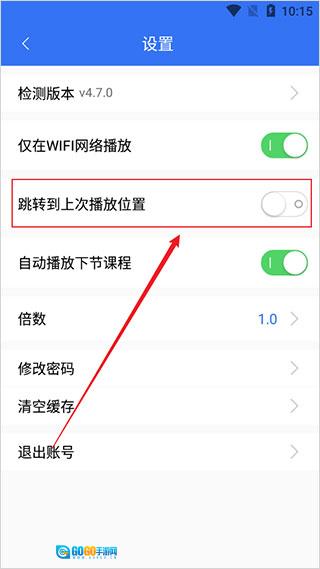 4、当“跳转到上次播放位置”按钮呈现绿色时,该问题即可解决。
