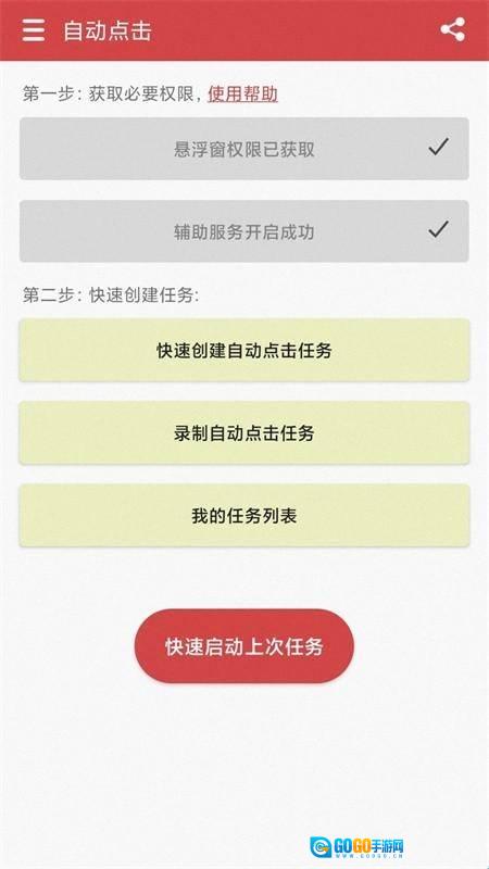 1、王者自动点击器具备浮动窗口功能与辅助服务,能够快速创建自动点击任务,直接记录所需的点击操作。