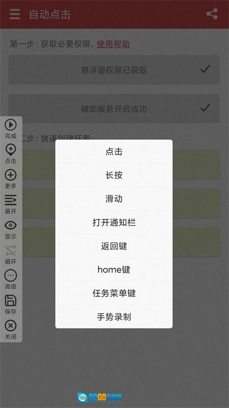 2、包含点击、长按、滑动、手势等多种操作,可满足不同场景下的自动点击需求。