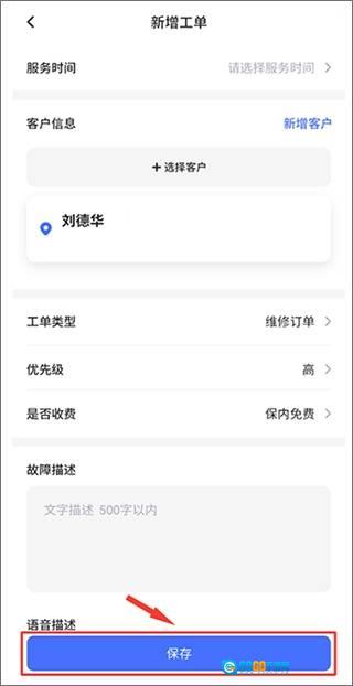 3、第三步:根据页面所给的信息提示,录入工单的详细内容,填写完毕后,点击页面底部的保存按钮,这样就能完成下单操作了。