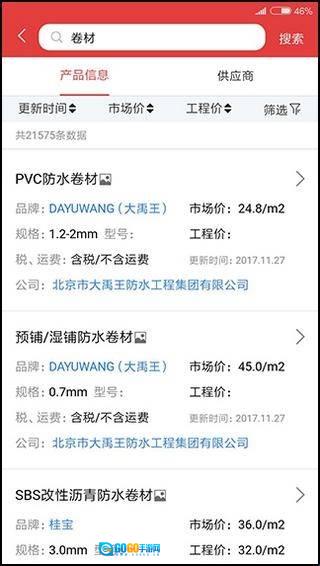 2、在搜索框中输入您所需的建材相关名称,即可快速检索到对应的产品。